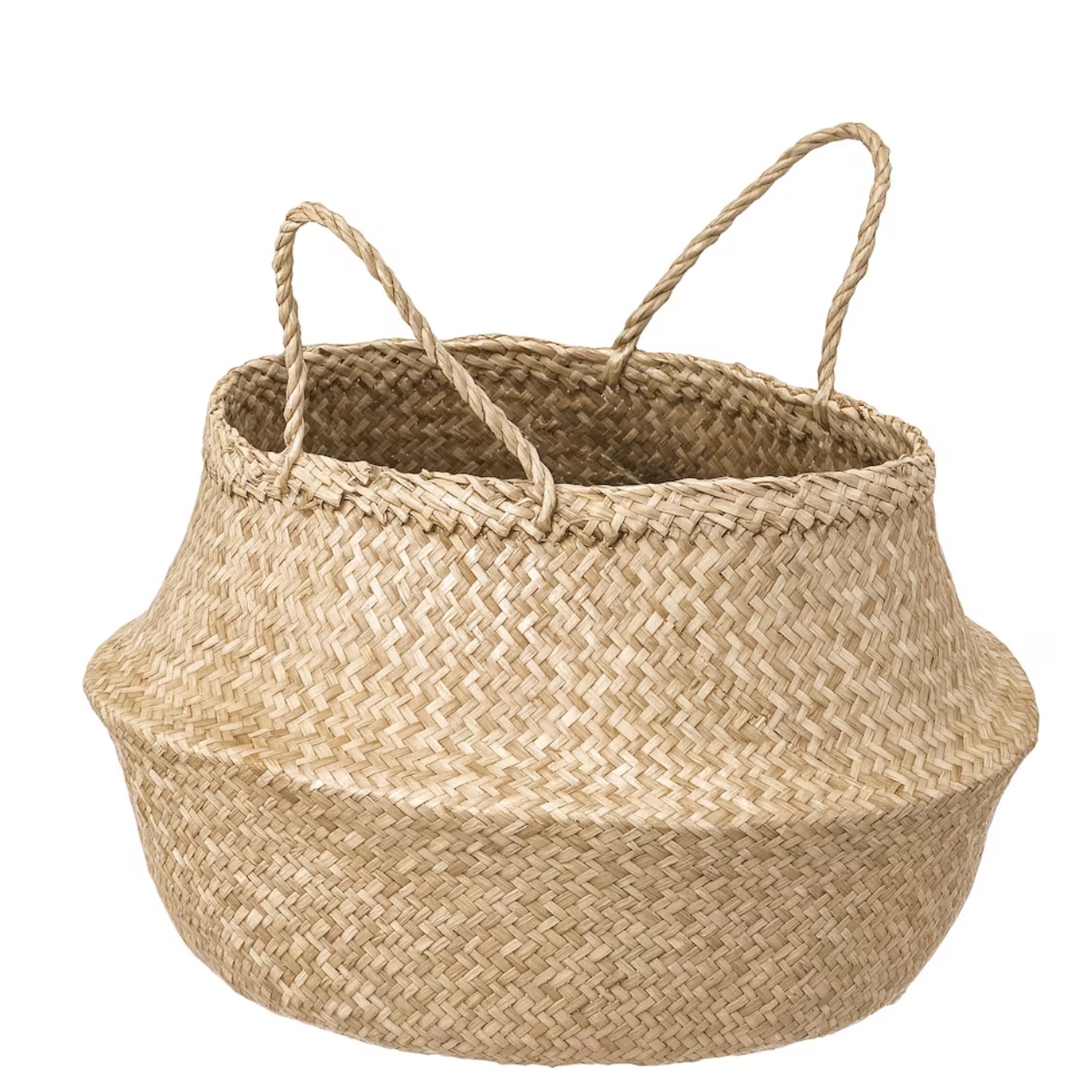 This braided basket has a unique look since each basket is handmade.