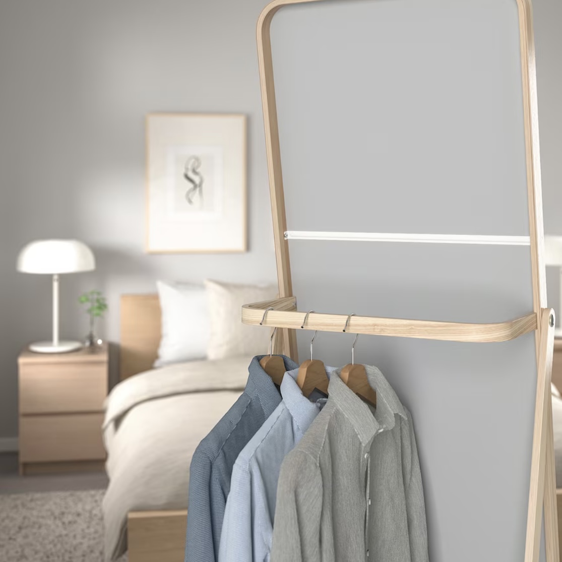 To avoid clothes piles and extra loads of laundry, you can hang used clothes behind the mirror.