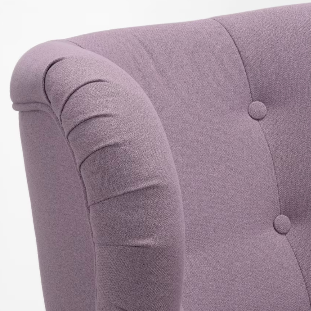 The back of the armchair has fabric-covered buttons which, together with the stitching, creates an elegant expression that suits both modern and traditional interiors.