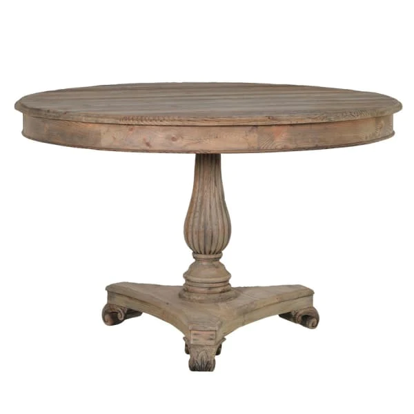 Our Colonial Drum Top Dining Table is produced from reclaimed, weathered pine, suitable for seating four chairs.