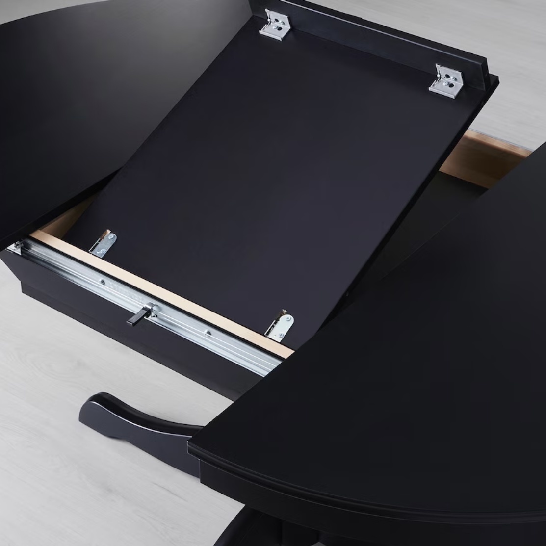 Concealed locking function prevents gaps between top and leaf and keeps the extra leaf in place.