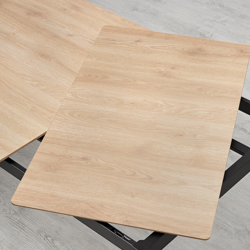 The foil melamine surface of the table top is durable, easy to clean and nice to the touch.