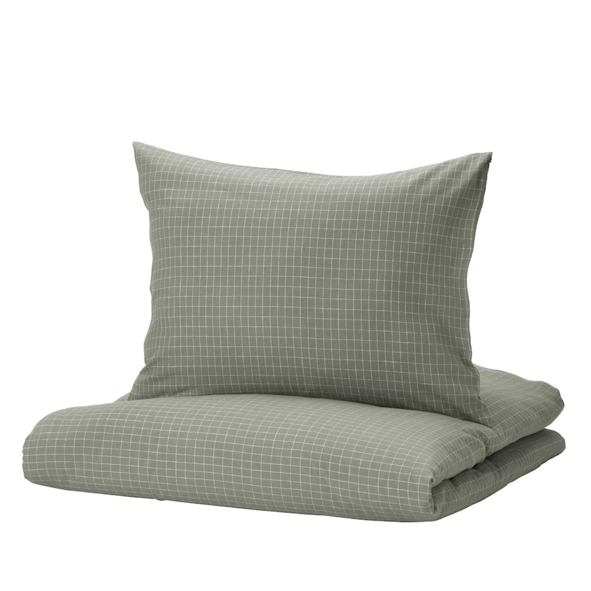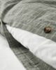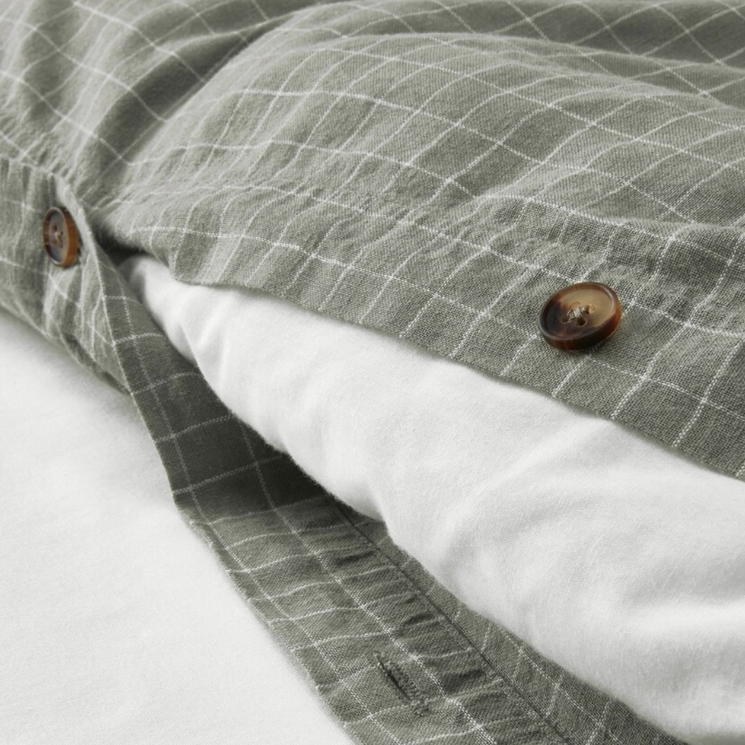Duvet cover with brown-stained plastic buttons that keep the quilt in place.