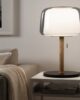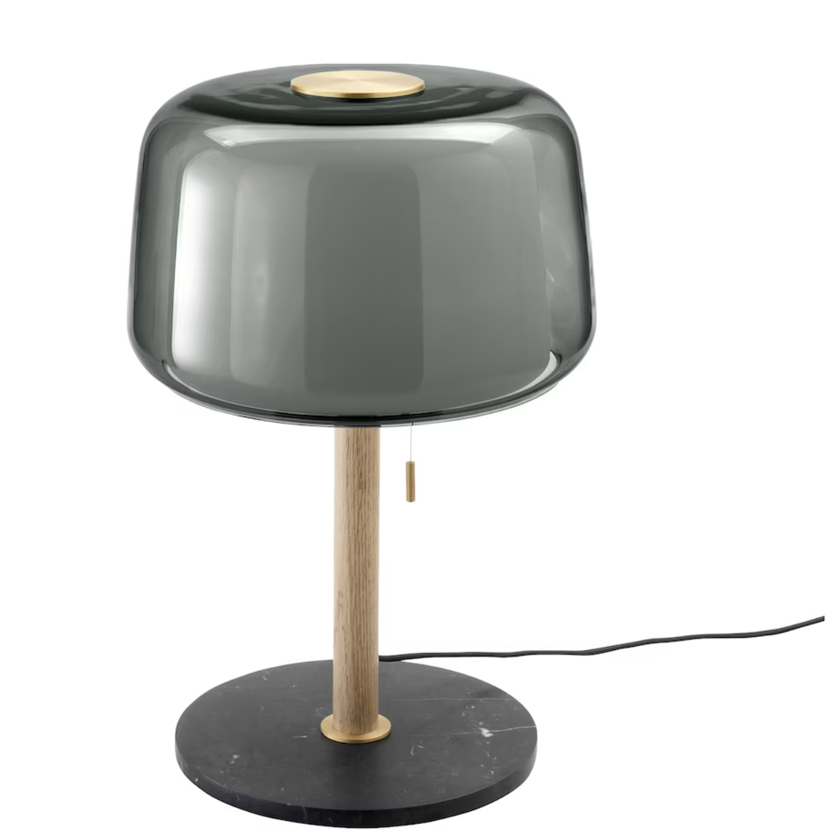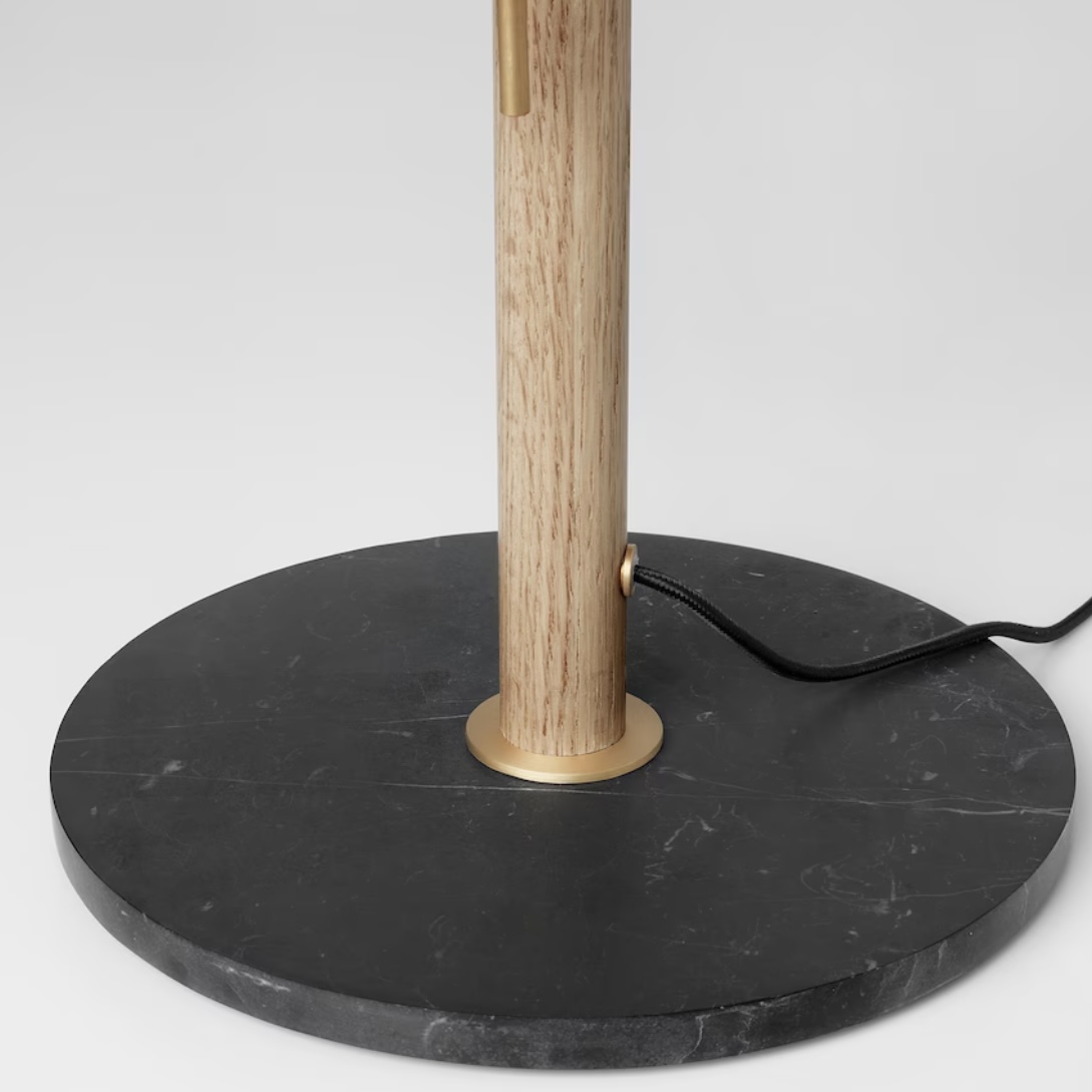 The lamp stands stable thanks to the heavy base in marble.