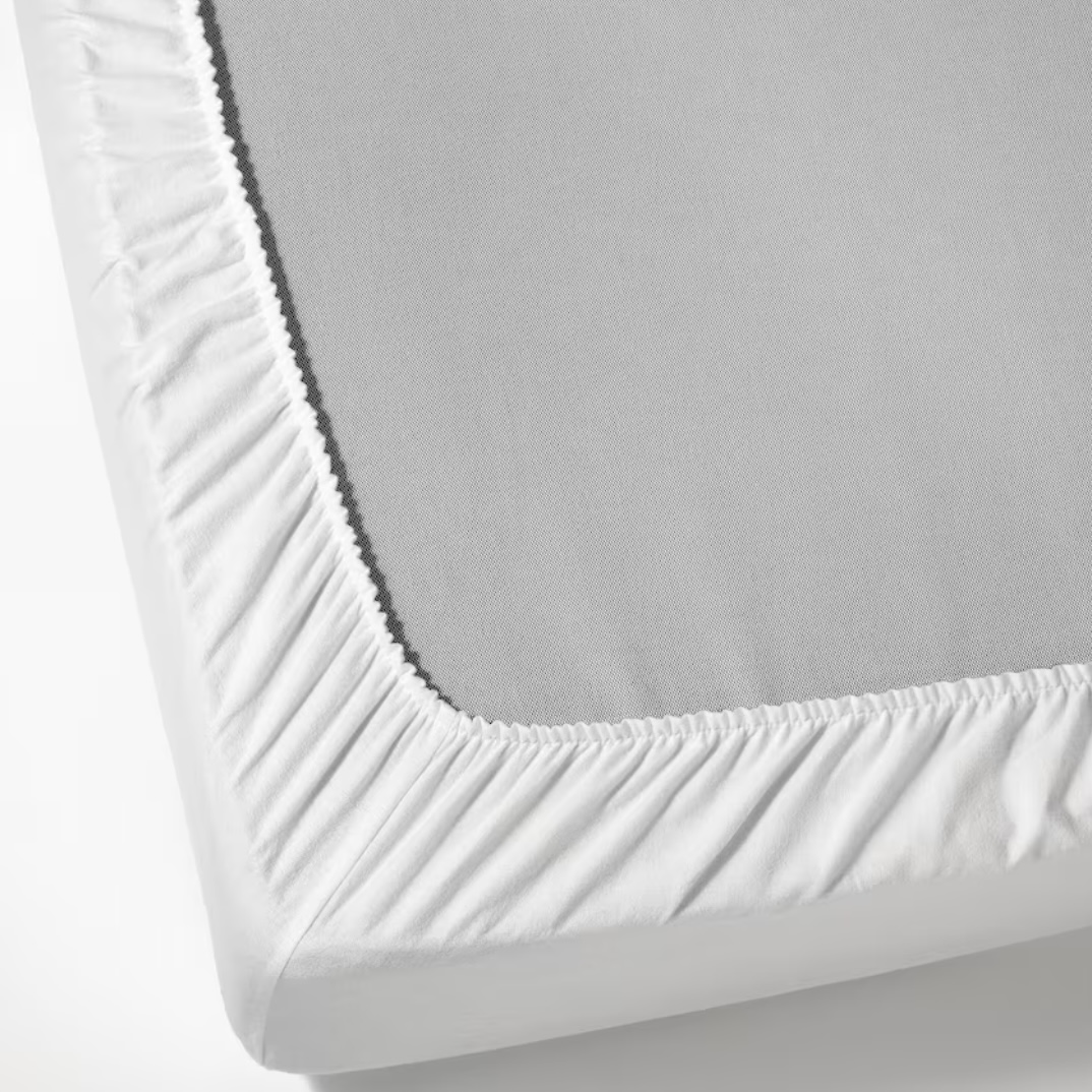 Fits mattresses with a thickness up to 26 cm since the fitted sheet has elastic edging all around.