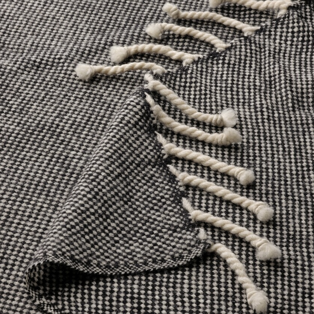 Wool is naturally stain-resistant, keeps the warmth even if it gets wet and is soft and dense to the touch.