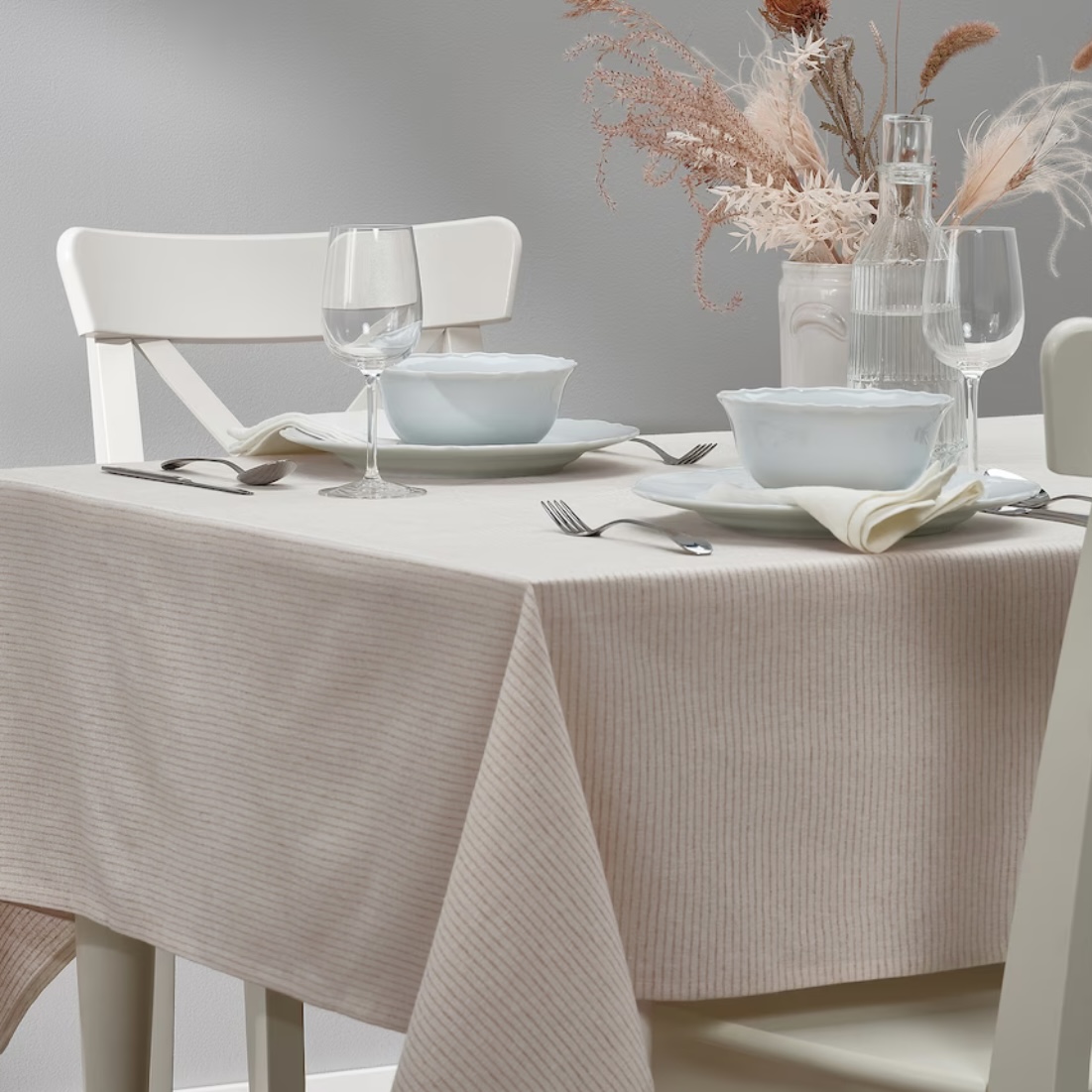 A tablecloth both protects the table and creates a decorative table setting with atmosphere.